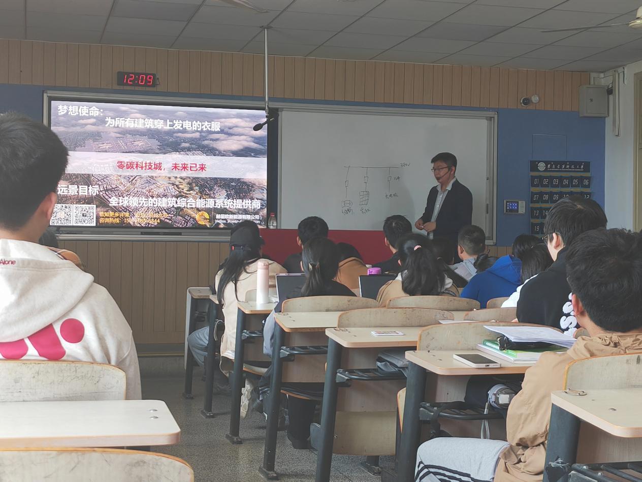 2023年5月30日,Z6尊龙凯时新能源有限公司技术部王博应邀前往西安建筑科技大学材料科学与工程学院授课,主讲BIPV光伏建筑一体化产品与传统光伏组件产品优劣、BIPV系统设计原理、安装实施过程等内容,课后同学们踊跃发言王博耐心解答,并与学院杨春利博士、孙可为博士、张强博士进行学术研讨。